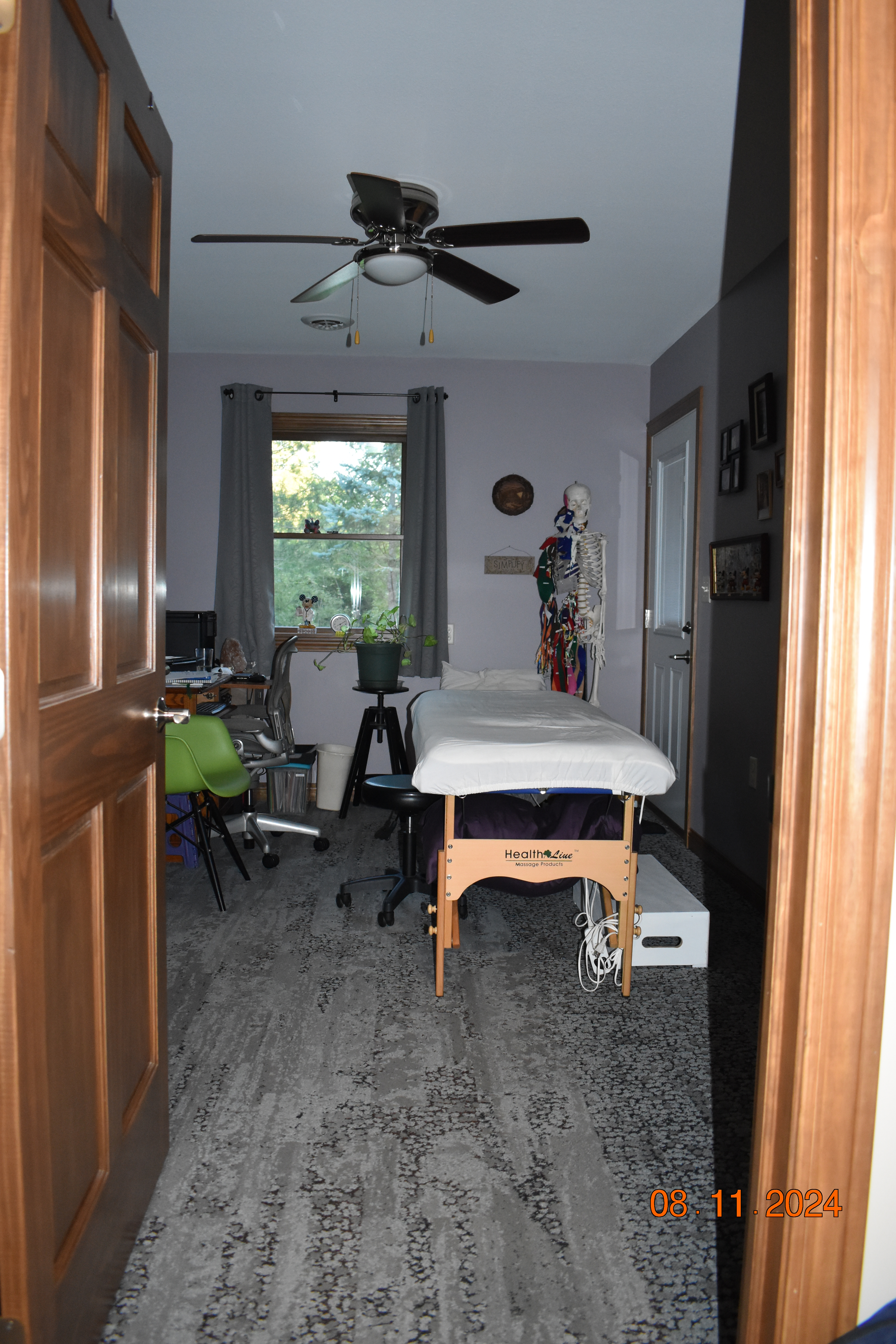 - In-your-home (individual and family) sessions are available upon request. Additional cost for travel and setup of equipment. Please reserve space a bit larger than a twin size bed to fit a massage table and rolling chair.